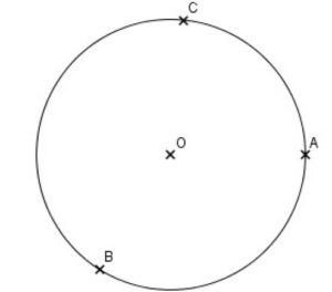 $\widehat{ABC}$ est un angle inscrit interceptant l’arc $\stackrel{\frown}{AC}$