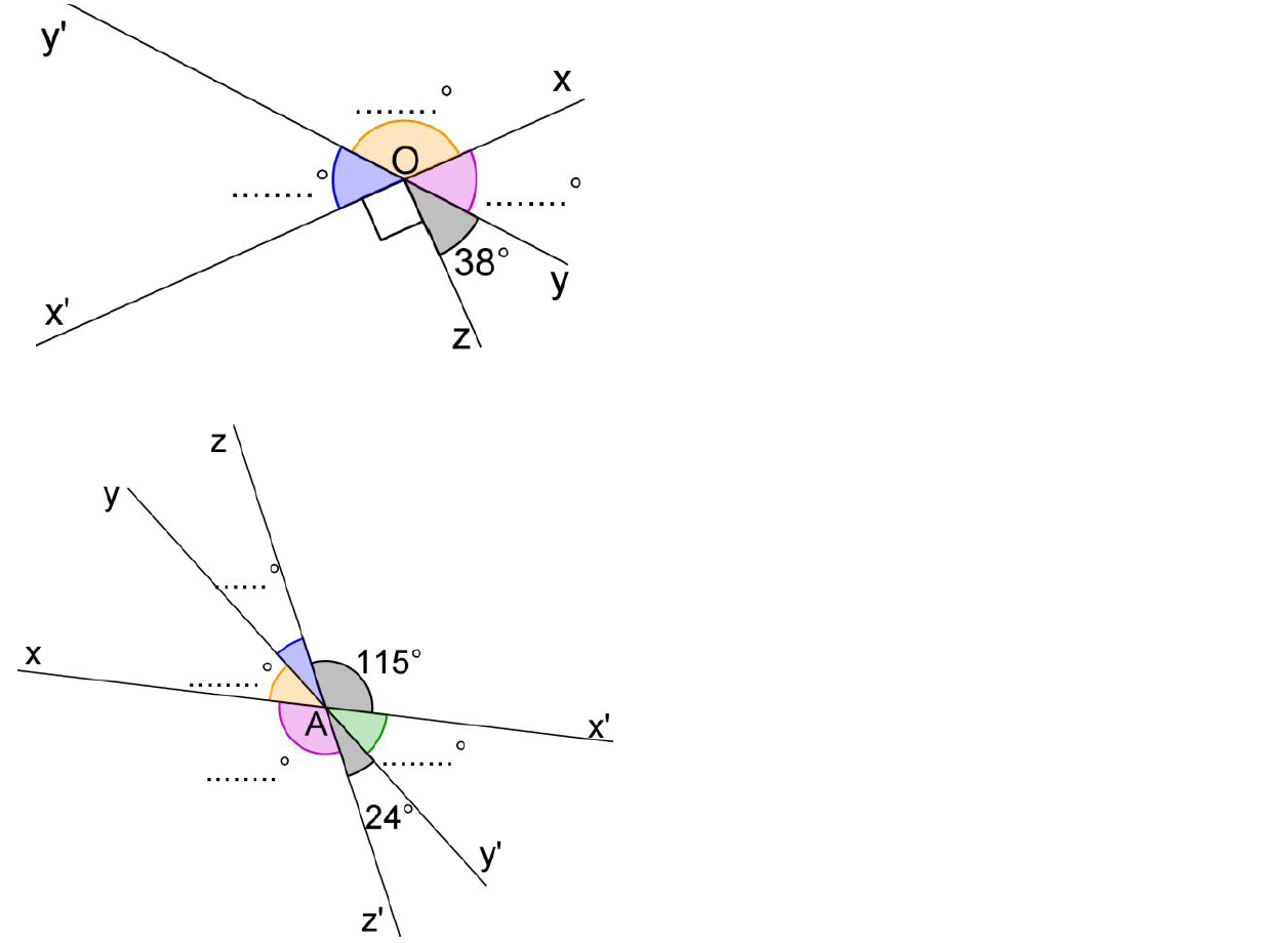 $1)$ Retrouver dans chaque cas la valeur des angles inconnus sans effectuer de mesure :