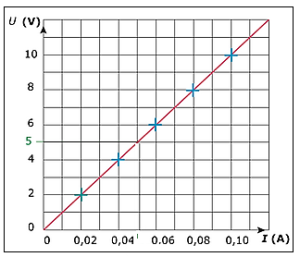 Remarque : La caractéristique \(U = f(I)\) d’un conducteur ohmique est linéaire. Le coefficient directeur de la droite est la résistance R.