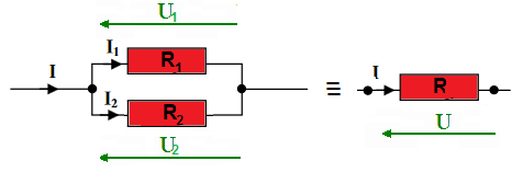 Deux conducteurs ohmiques de résistances R1 et R2 associés en dérivation sont équivalents à un conducteur ohmique de résistance R.
