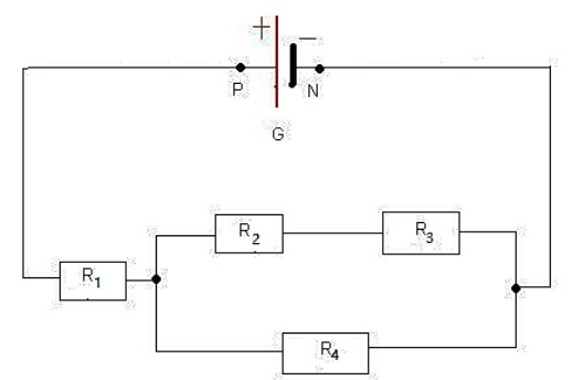 \(R_1 = 2\ \Omega \quad ; \quad R_2 = R_3 = 4\ \Omega \quad ; \quad R_4 = 16\ \Omega\)