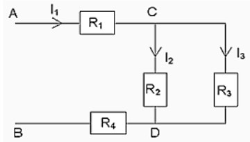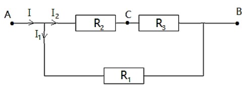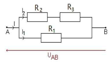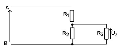 \(U_{AB} = 12\ V \quad ; \quad R_1 = 60\ \Omega \quad ; \quad R_2 = 200\ \Omega \quad ; \quad R_3 = 300\ \Omega \quad ; \quad R_4 = 20\ \Omega\)