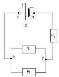 On applique aux bornes A et B du montage ci-dessus une tension électrique \(U_{AB}\).