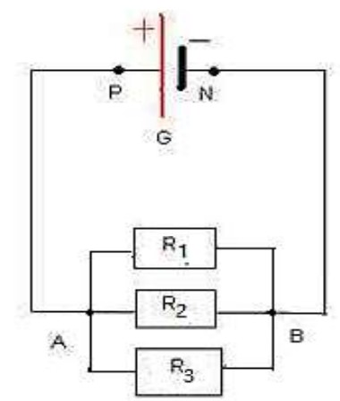 Pour des résistances en dérivation, la résistance équivalente vérifie \(\frac{1}{R} = \frac{1}{R_1} + \frac{1}{R_2}\).