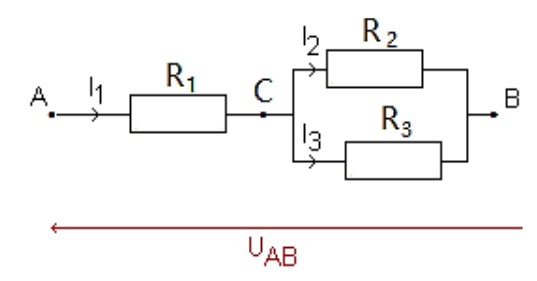 \(U_{AB} = 6\ V \quad ; \quad R_1 = 330\ \Omega \quad ; \quad R_2 = 220\ \Omega \quad ; \quad R_3 = 820\ \Omega\)