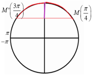 Sur le cercle trigonométrique, \(\sin(x) \geq \frac{\sqrt{2}}{2}\) pour \(x \in \left[\frac{\pi}{4}, \frac{3\pi}{4}\right]\) sur \(]-\pi, \pi]\).