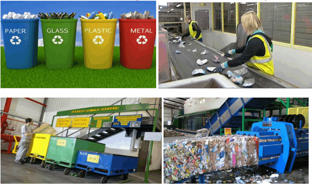 $\checkmark$ Collecte et tri des déchets recyclables selon leurs catégories: plastique verre – métaux.