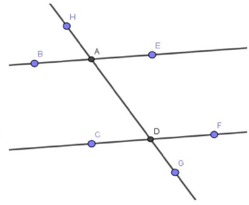 2) Si les droites (BE) et (CF) sont parallèles et \(\widehat{BAD} = 158^\circ\). (3,5 pts)
