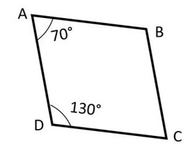 1) ABCD un parallélogramme tel que : \(AD = 3 \, \text{cm}\), \(DC = 4 \, \text{cm}\) et \(\widehat{ADC} = 70^\circ\).