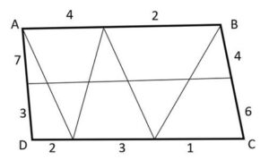 2) ABCD un losange tel que : \(AC = 4 \, \text{cm}\) et \(BD = 5 \, \text{cm}\).