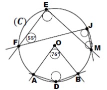 On considère la figure ci-jointe où (C) est un cercle de centre O et les points \( A, B, D, E, F, J \) et \( M \) appartiennent au cercle (C).