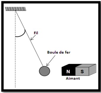Lorsqu’on approche un aimant, le pendule dévie comme l’indique la figure ci-contre :