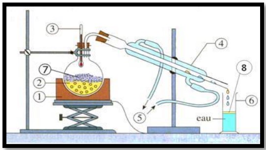 L’Estragole est une espèce chimique présente dans les feuilles d’estragon. L’huile essentielle d’estragon aurait des vertus antiallergiques. Elle peut être extraite par le montage présenté sur le document ci-contre.