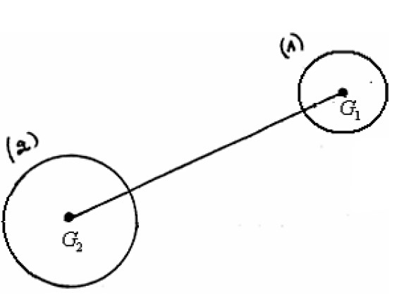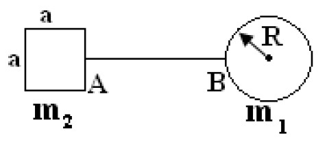 Deux boules de masses respectivement \( m_1 \) et \( m_2 \) sont liées par une liaison rigide de masse négligeable.