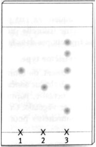 chromatographie sur couche mince. Sur la plaque, on effectue trois dépôts :