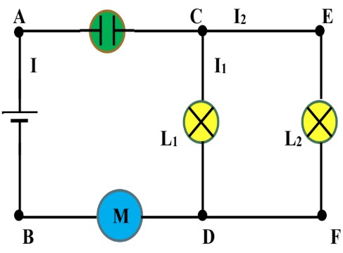 b) Ajouter sur le schéma du circuit, l’ampèremètre pour mesurer l’intensité \(I\) du courant principal.