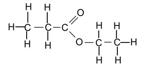 La formule développée ci-contre représente la molécule de propanoate d’éthyle (arôme de fraise).