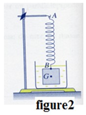 On considère un ressort de raideur \( K \) et de longueur initiale \( ℓ_0 = 7 \, \text{cm} \). On suspend à l’extrémité du ressort un solide (S) de masse \( m = 400 \, \text{g} \), et sa longueur devient \( ℓ = 11 \, \text{cm} \) (figure 1).