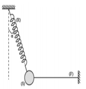 On considère un solide (S), de masse \( m = 200 \, \text{kg} \), accroché à un ressort (R) et à un fil (F) comme l’indique la figure ci-contre.
