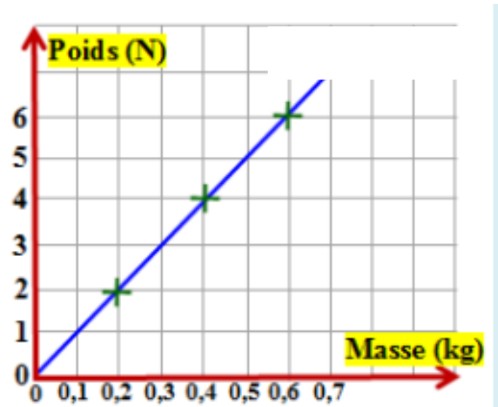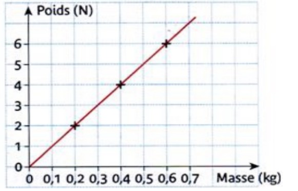 a) Pourquoi l’élève peut-il affirmer que le poids et la masse sont proportionnels ?