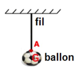 Un ballon de masse \( m = 400 \, g \) est suspendu par un fil et en équilibre comme le montre le schéma suivant.