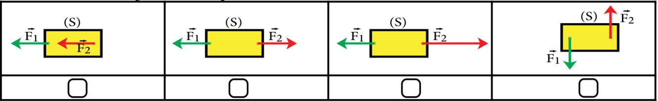 ➢ Condition -2- : F1→ + F2→ = 0→ (La même intensité et des sens opposés)