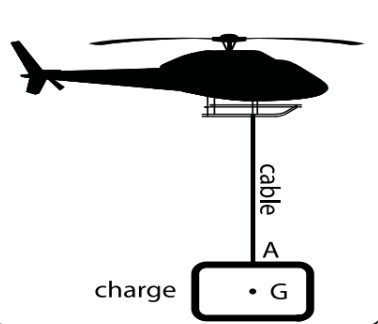 On donne : L’intensité de la force exercée par le câble sur la charge est \( T = 15000 \, N \). L’intensité de la pesanteur est \( g = 10 \, N \cdot kg^{-1} \).