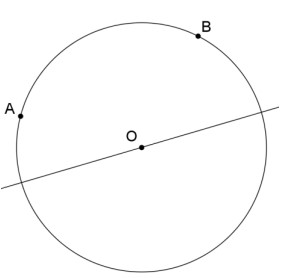 Sur le cercle ci-dessous, placer le point C pour que le cercle soit circonscrit au triangle ABC, sachant que la droite tracée passant par O est la médiatrice du côté [BC].