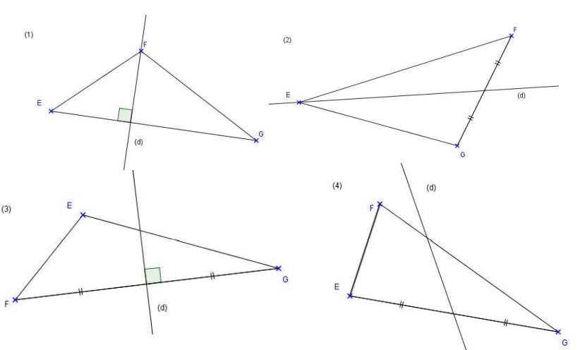 Dire dans chaque cas, si la droite (d) est une médiatrice du triangle EFG.