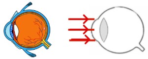Cause : Œil trop court et pas assez convergent. L’image d’un objet rapproché se forme après la rétine (image floue).