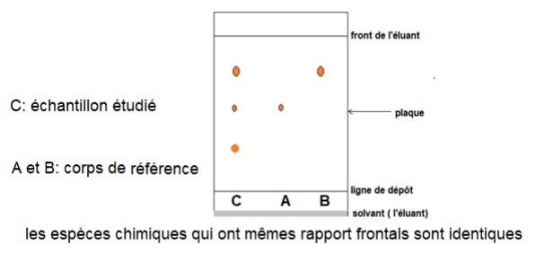 - des espèces chimiques identiques migrent à des hauteurs identiques sur une même plaque de chromatographie.