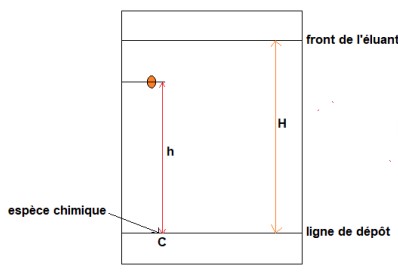 H : La distance parcourue par l’éluant (entre la ligne de dépôt et le front de l’éluant).