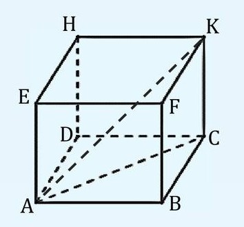 Considérons le cube \( ABCDEFKH \) suivant :