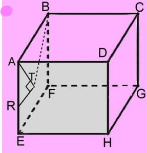 Considérons le cube suivant. Soit \( T \) un point du carré \( ADHE \), tel que \( (AT) \perp (TR) \).