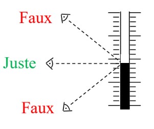– Lors de la lecture, on place l’œil horizontalement au niveau du liquide thermométrique.