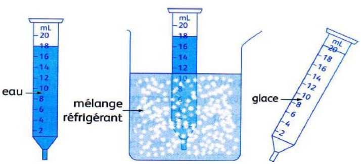 On met de la glace dans une seringue et on la refroidit comme l’indique la figure suivante.