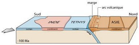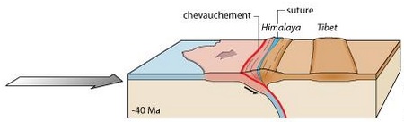 Cet océan s’est donc fermé petit à petit jusqu’à disparaître. A force de se rapprocher les « continents » indien et eurasiatique ont fini par rentrer en collision.