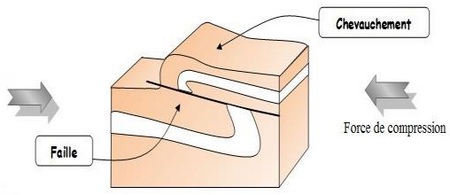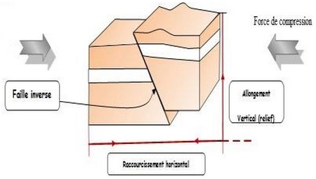 Au cours de la collision entre deux continents, les roches sont comprimées et déformées (plis et failles), créant ainsi de nouveaux reliefs : les chaînes de montagnes.