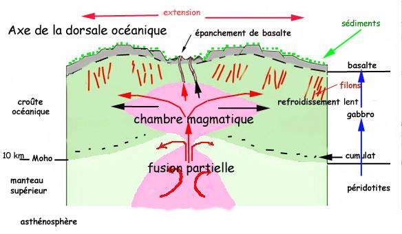 4. Les conditions de formation du basalte et du gabbro au niveau de la dorsale.