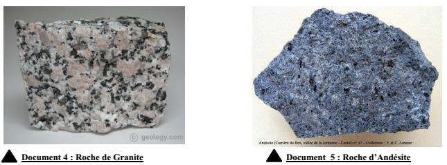 1. Observation de roche de Granite et Andésite (Doc 4)