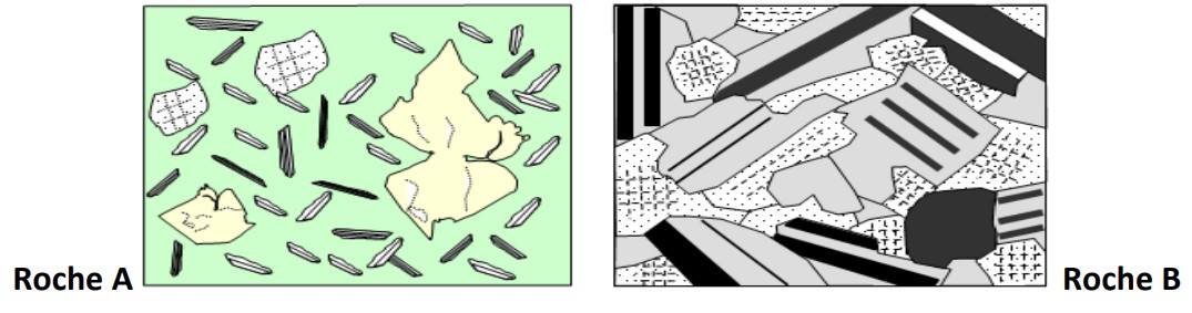2) Détermine en justifiant ta réponse les textures de chaque roche