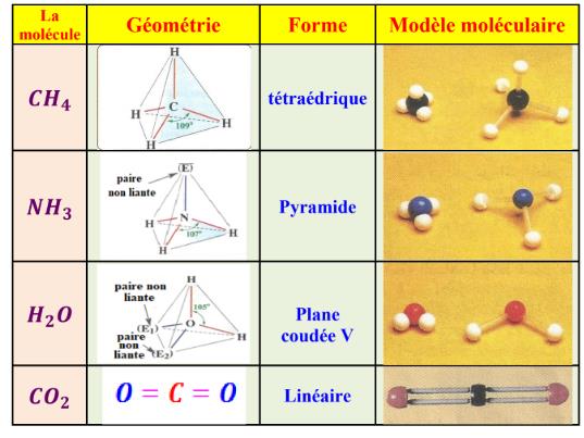 La géométrie de quelques molécules – Cours