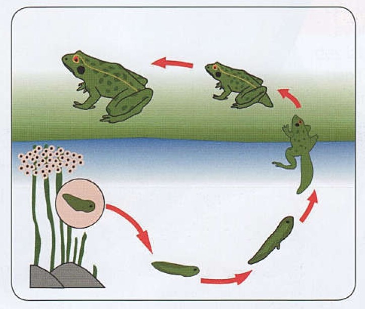 Le document ci-dessus présente les principales étapes du cycle de développement de la grenouille.