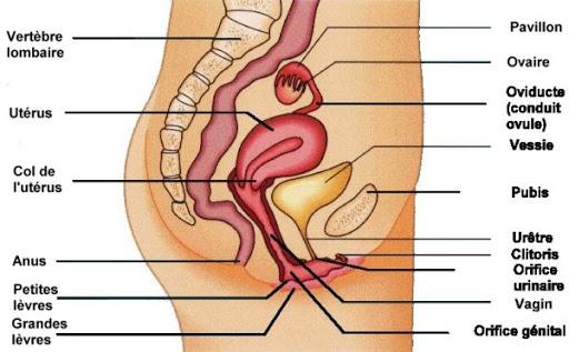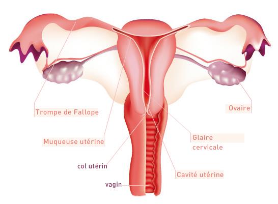 b- Appareil reproducteur féminin : Ovaires, trompes de Fallope, utérus, vagin. Production cyclique d’ovules et d’hormones (œstrogènes, progestérone).