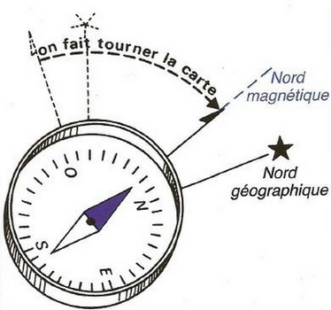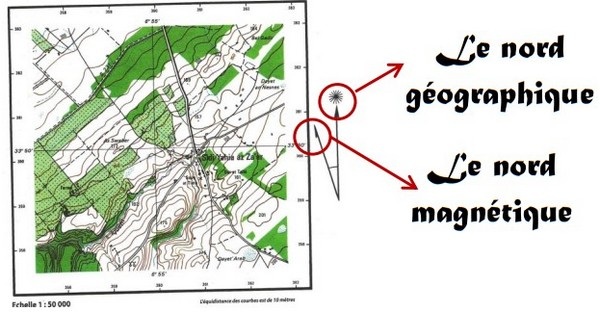 Indication du Nord géographique et magnétique