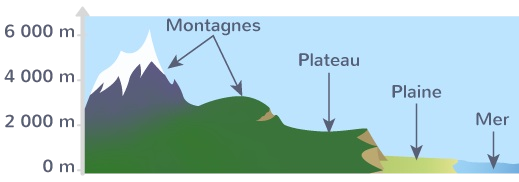 On observe des montagnes, des collines, des vallées… ce sont des formes de relief.