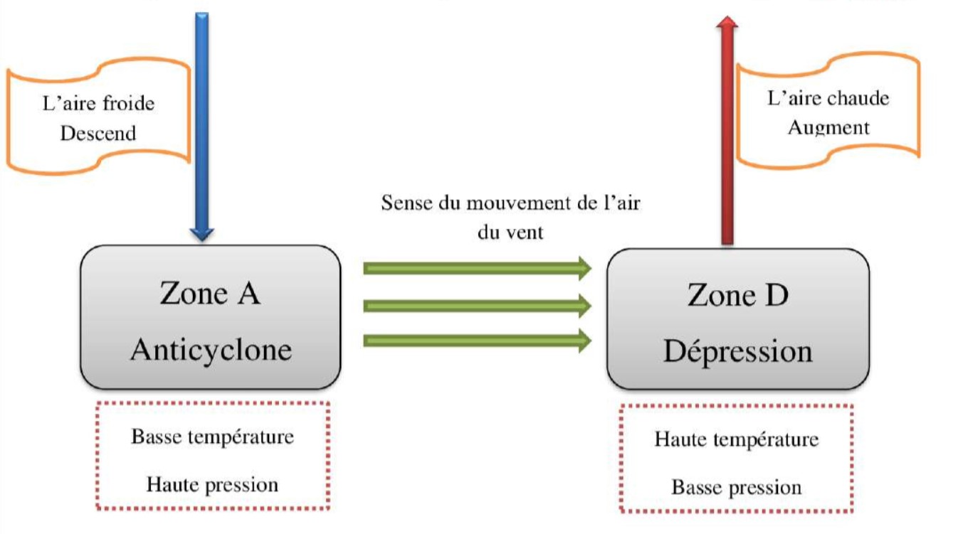 14. Analysez le schéma suivant représentant la formation du vent et répondez aux questions: