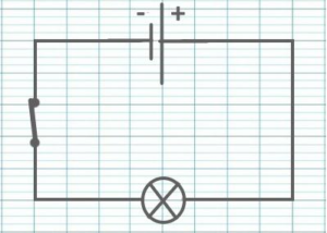 Un circuit électrique simple est formé par une boucle qui comporte un générateur, un interrupteur, une lampe (ou un autre dipôle récepteur) reliés par des fils de connexion.