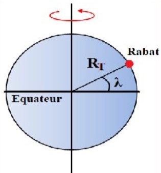 2. Calculer dans le même repère, la valeur de la vitesse d’un point de Rabat de latitude \( \lambda = 34^\circ \).