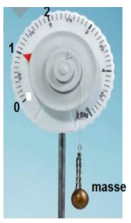 📌Une masse est accrochée à l’extrémité d’un dynamomètre.
